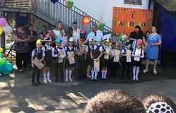 Сегодня в Туапсинском районе для 14,5 тысячи школьников (107 чел. в нашей школе) закончился учебный год. В их числе более 540 выпускников 11 классов и почти 1400 девятиклассников (10 выпускников нашей школы). Учебный год в нашей школе завершился торжественной линейкой и традиционными классными часами, посвященными истории и культурному наследию Кубани, ратным и трудовым подвигам земляков. Началась торжественная линейка традиционным маршем классных коллективов школы с их классными руководителями. Отдельно были приглашены на линейку выпускники основной начальной (13 учеников 4 класса) и основной школы (10 выпускников), каждого выпускника называли поименно. На флагштоке в школьном дворе были подняты флаги Российской Федерации, Краснодарского края и Туапсинского района под звуки Гимнов Россиии и Краснодарского края, право поднять их было предоставлено: выпускнице 9 класса Зенковой Ксении и отличникам школы Рабчевской Адине (8 кл.) и Чирухину Георгию (4 кл.). Приказ о допуске выпускников 9 класса к государственной итоговой аттестации зачитал заместитель директора по УВР Капикян Х.Ц. На торжественной линейке присутствовали гости: Белов Игорь Владимирович ведущий специалист отдела по работе с обращениями граждан администрации муниципального образования Туапсинский район и Конакова Альбина Камилевна ведущий специалист по работе с одаренными детьми управления образования администрации МО Туапсинский район. На торжественной линейке были подведены итого учебного года: грамоты за изучение отдельных предметов получили выпускницы 9 класса Зенкова Ксения и Рабчевская Дарья, похвальным листом за успехи в учебе была награждена Рабчевская Адина. На празднике звучали школьные частушки (3 кл.), стихи первоклассников, которые выступили в роли маленьких гномов, зажигательный танец выпускников начальной школы (4 кл.), а традиционный школьный вальс возглавили учитель начальной школы Смелко А.С. и ученик 8 класса Зенков Кирилл. Для всех стало неожиданностью появление на школьной линейке Деда Мороза, который спутал конец года и завершение учебного года. Он подарил сладкие призы выпускникам, а ведущие линейки зачитали им шутливые предсказания. Затем для выпускников школы и всех обучающихся прозвенел последний звонок 2018-2019 учебного года.